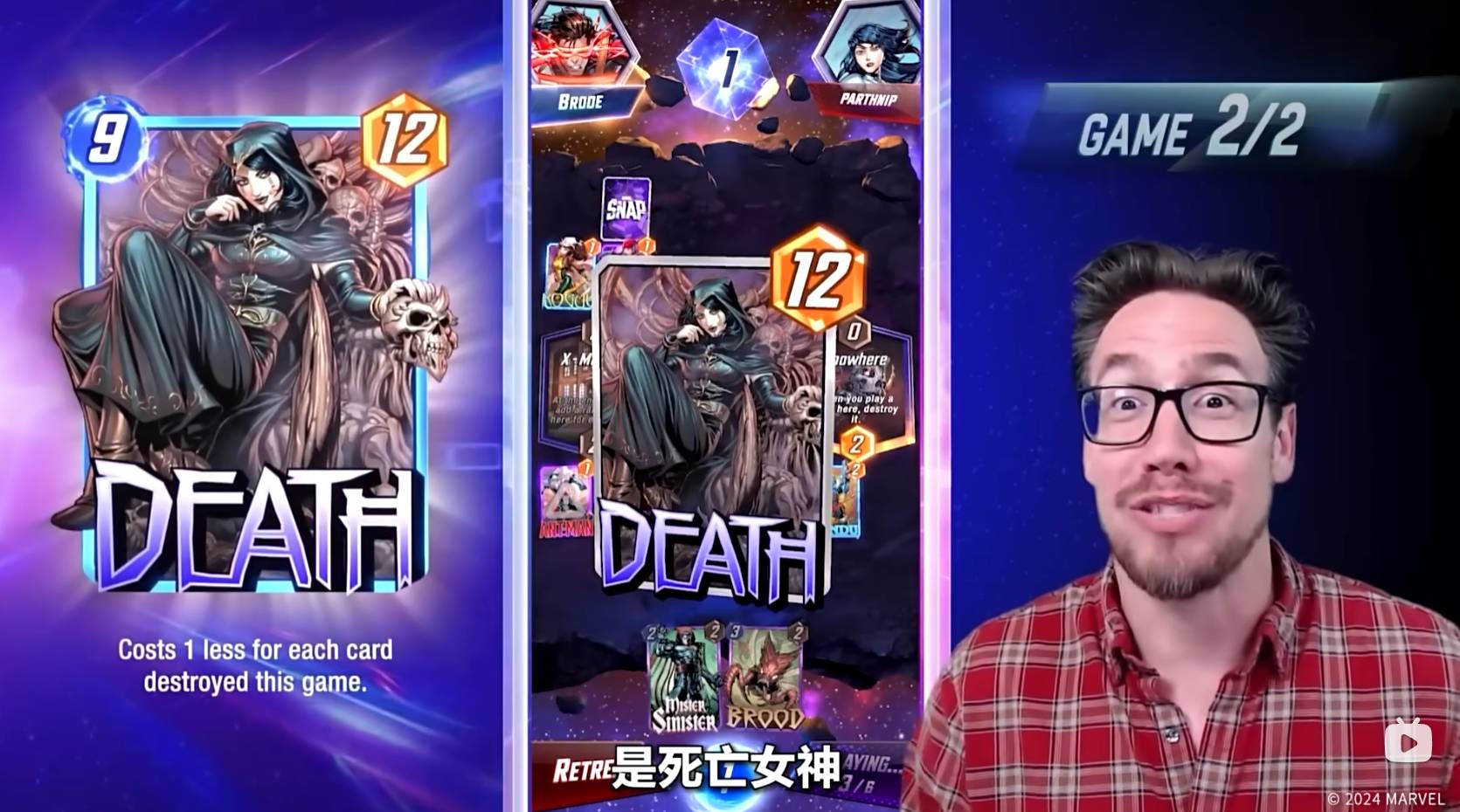 BB选择了SNAP!因为他对自己的纳摩在中间的深红宇宙取得胜利非常有信心!对于他来说,虚无之地的区域应该是可以拿下的,那么只要纳摩在中间区域中赢过对方,那么他就可以获得胜利。