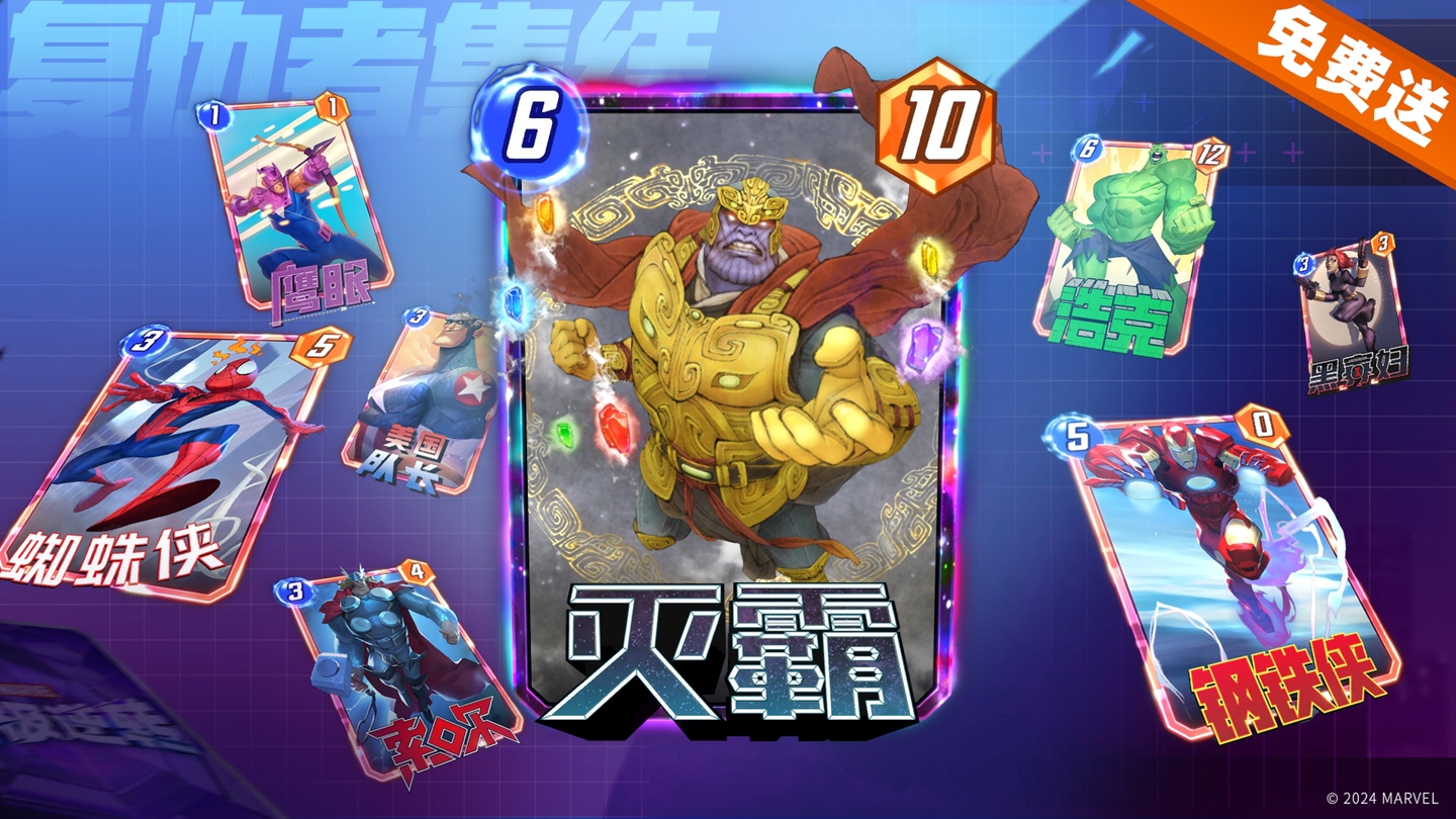 完成新手任务后,探员们即可开启复仇者集结任务,通过完成任务达到不同积分级别,便能解锁对应的复仇者联盟成员绝版变体。完成所有任务即可免费解锁终极奖励——超级反派灭霸的中国风变体卡牌!