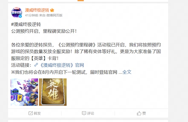 除此之外,《漫威终极逆转》国服团队还带来了“公测预约里程碑”。即日起,累计预约人数到达里程碑数据,将按照预约游戏的探员数量发放全服奖励。除了游戏内资源礼包和稀有高级变体,运营团队更是为玩家们准备了国服独有的限定【英雄】卡背,不容错过。