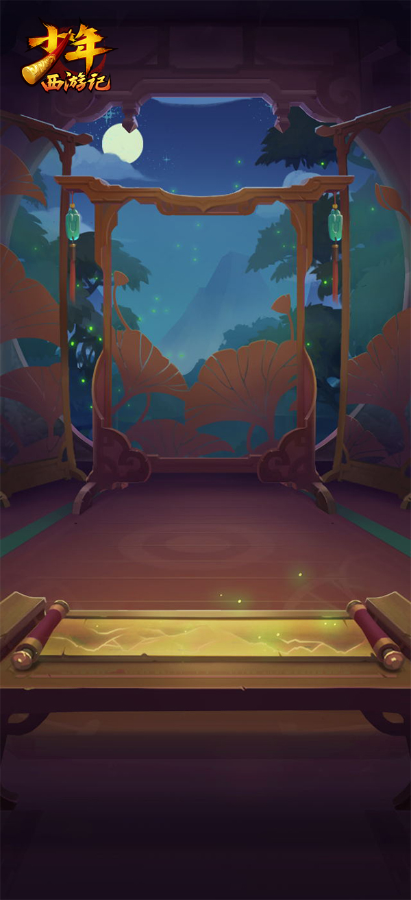作为配置阵容和主要的神将展示区,阵容场景的更新也是水到渠成。和主界面相同,阵容场景也有昼夜交替的模式。白昼晴空万里,静夜满天星斗。而中间屏风的设计也让此处更有家的感觉,在此与神将亲密接触培养感情,日后定能助少年征战三界。