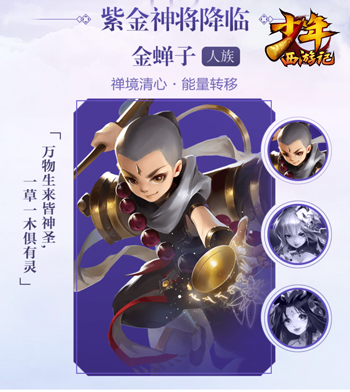 人族的新紫金神将是金蝉子,他是自三界灵明孕育而生的金蝉,受佛祖如来点拨而化形为人,为参悟佛法玄妙真谛,甘愿受十世轮回之苦以求取无上真经。