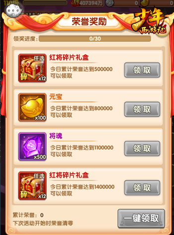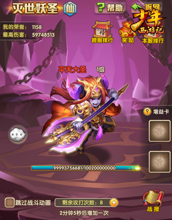 全新的战区PVE玩法“灭世妖圣”玩法将在每周限时开启,所有达到等级的玩家皆可挑战。在对抗过程中,玩家需要根据自身的战斗力,合理利用策略卡牌,并规划攻击次数,从而对BOSS造成更多伤害。同时,玩家在争夺战区榜单排名时,不仅需要拼战力,还要拼手速、策略,从而获得海量元宝和红色神将碎片等资源奖励。