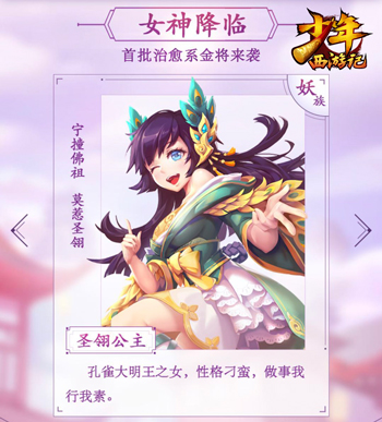 西游卡牌王者之作《少年西游记》全新资料片“‘愈’见美好”今日正式上线,三位治愈系金将——上圣观音、圣翎公主、西梁女帝的背景故事和技能首次曝光。此外,全新组队PVP玩法“百战狮驼岭”开启,玩家可参与跨服战斗,夺得金法宝、元宝等珍稀资源奖励。