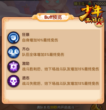除了全新金将来袭,全新的跨服PK玩法“百战狮驼岭”也在新资料片中开启。在该玩法中,玩家可自行选择对战BUFF,并由队长决定小队的武将布阵,再匹配对手战斗。战斗将获得一定的积分,最终按照积分多少产生跨服榜单。此外,玩家参与该活动还可获得金法宝、元宝等珍稀资源奖励。