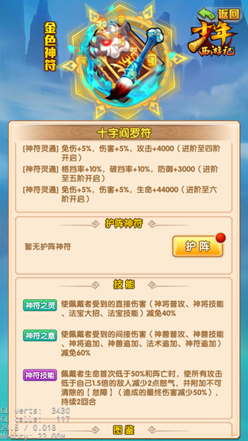金色神符不仅可在对阵时扭转战局,还可通过神符护阵,开启金符特有的护阵技能。此外,玩家还可通过强化、进阶、开启神符灵通、点亮图鉴多重养成玩法提升阵容的整体实力。