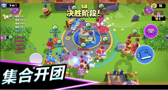 除了用单局短、门槛低、强策略性的玩法让玩家通过丰富的玩法,收获除最终胜利以外的爽感体验,《爆裂小队》在决定满足玩家的社交需求、获得团队成就感上也费了不少心思,即将在国服版本上线的5V5对战模式就是supercell给予玩家的新惊喜。