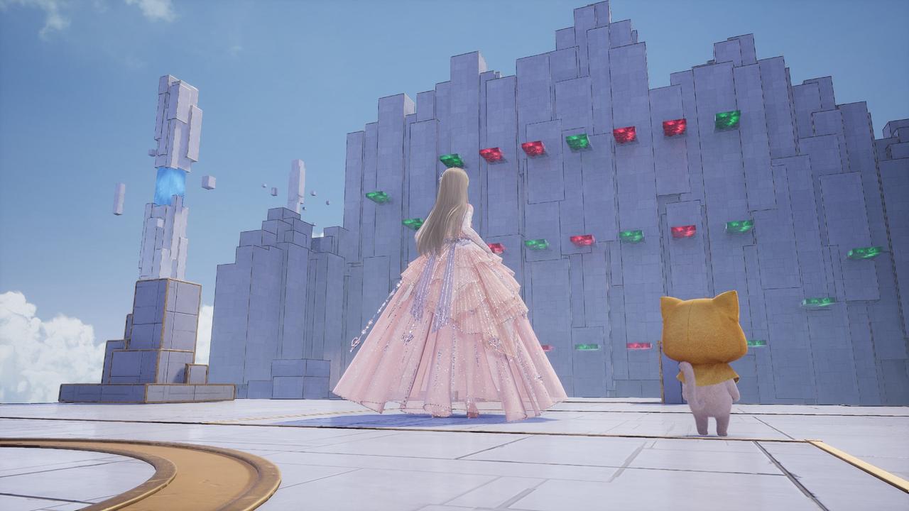 除了探索和平台跳跃玩法之外,世界观和角色也是《无限暖暖》的魅力之源。暖暖和她可爱的伙伴大喵之间有着深厚的感情,这一点以细致入微的方式展现了出来。在游戏开头他们突然被传送到异世界之后,暖暖和大喵互相开着玩笑缓解气氛,努力共同克服困难。城镇中的 NPC 也友善地欢迎他们。富永先生表示,他和他的团队在游戏角色身上投入了大量精力,尤其是暖暖和大喵。
