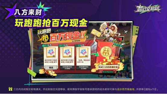 除此之外,在完成指定剧情完成指定任务之后即可参与瓜分百万现金红包。官服玩家只需在公测前三日参与游戏完成任务,就可以参与到百万现金池的瓜分活动中,奖励有限,先到先得哦!