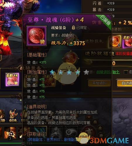 战骑达到3阶后,将可以喂食成长丹,成长丹可以百分比增加战骑的进阶属性;
