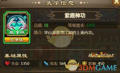 游戏中的紫霞神功的等级需求为50级,以下是紫霞神功掉落的区域和途径: