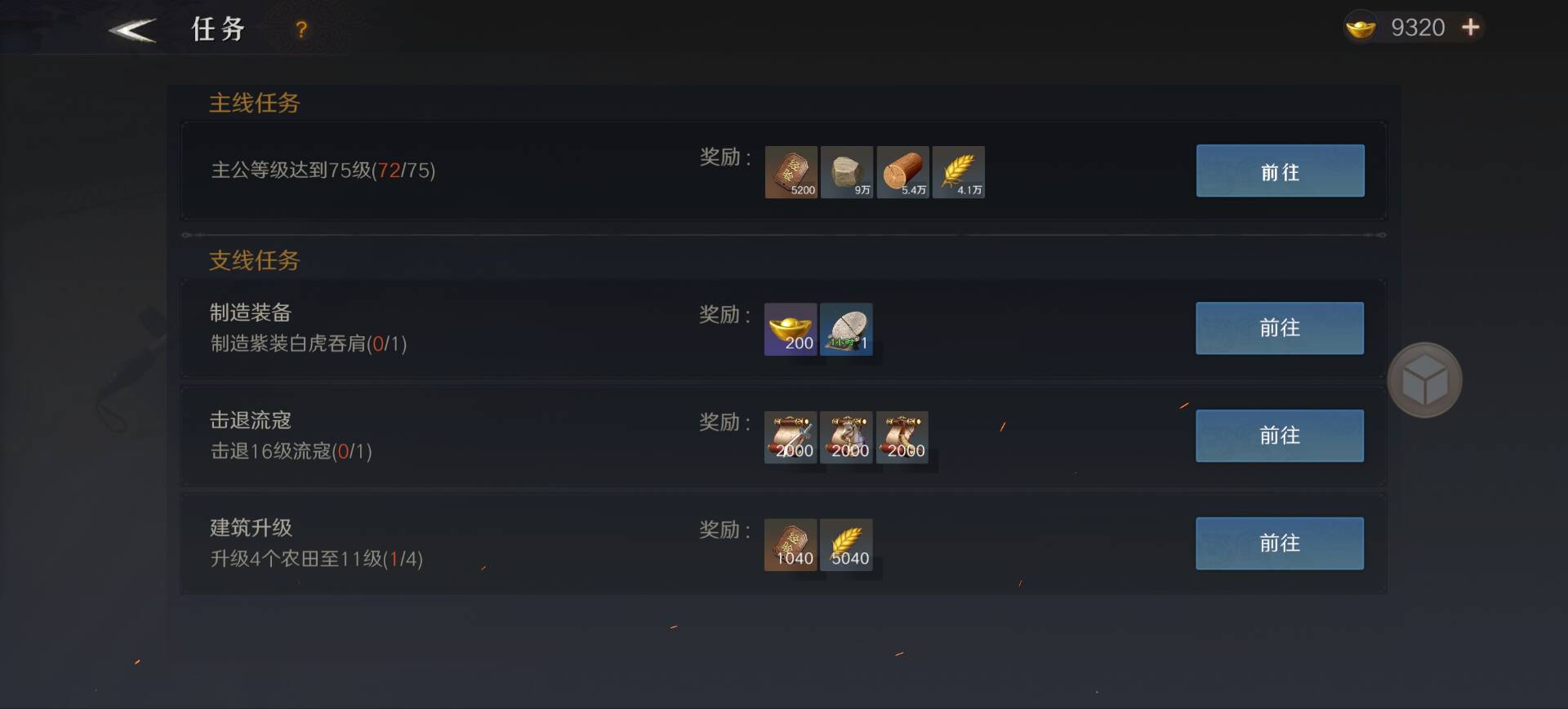 部分支线任务完成后可以获得黄金奖励,如制造紫色装备任务。