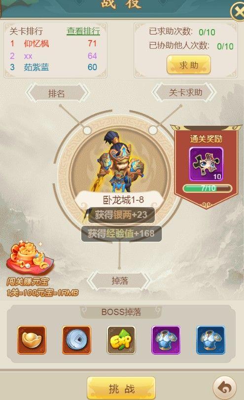 最后就是过关斩将,这个呢就好比是个爬塔的游戏,从第一层慢慢往上面打,然后经验也是越来越多的,但是难度也会是越来越多,的毕竟是一个爬塔的游戏,难度肯定就不用说,战斗力足够可以去挑战。