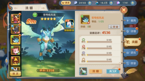 (1)苍穹疾风龙是SSR品质初始五星宠物,官方给这个宠物的定位是控制系,但是小编觉得如果只把宠物当控制那是在是太浪费了,它绝对可以当你的输出主力。
