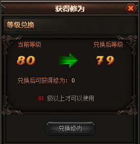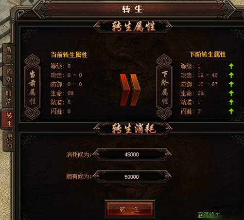 转生等级提升需要消耗转生修为,可以通过活动、礼包、商城等得到的修为丹来获取修为,也可通过消耗经验和金币兑换大量修为。