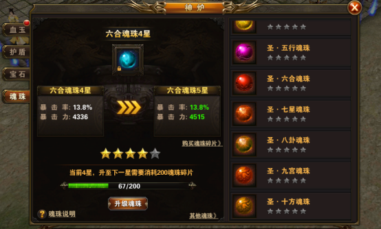 低等级的魂珠可以消耗一定数目的魂珠碎片进行升级,提升为高一级的魂珠。