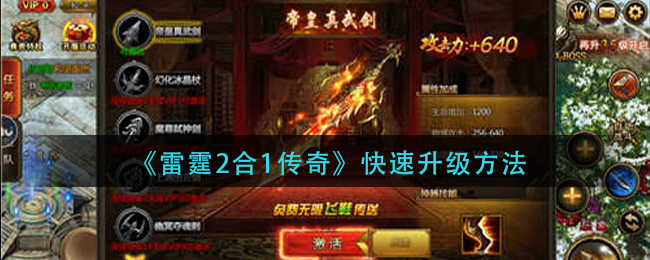 雷霆2合1传奇怎么快速升级?在游戏内提升等级,是十分重要的一件事件。很多玩家还不知道快速升级方法是什么。下面就让小编给大家带来《雷霆2合1传奇》快速升级方法,感兴趣的玩家一起来看看吧。