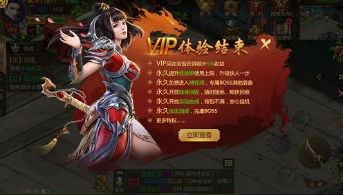 玩家可以开通VIP,可以有挂机经验果,可以提升经验的上限,可以在挂机的时候获得更多的经验,都有很高的额外加成。