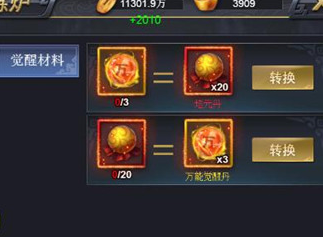 20个培元丹可以转换3个万能觉醒丹