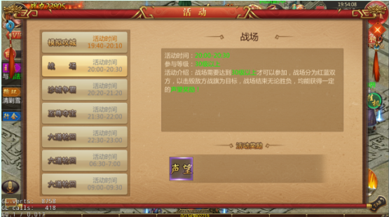 战场为《热血霸业》特有的PVP玩家对抗玩法,活动分为红方与蓝方两个阵营,活动开启后,进入活动的玩家将自动分配到其中一方。一旦分配完成,即使退出再进,也依旧是这个阵营的成员。