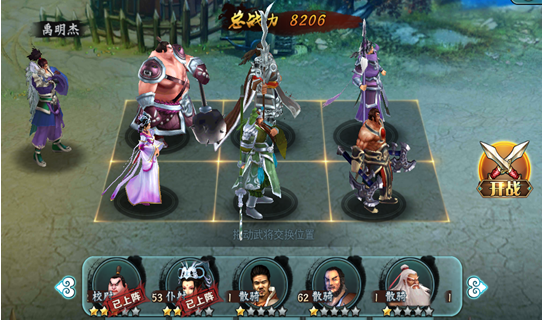 2)两局三胜(玩家拥有的武将分为三个阵容进行战斗,通过三局两胜的方式决定胜负,异步交互玩法)