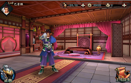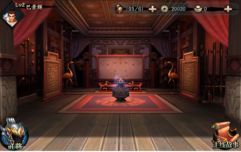 游戏内共有广场、闺房、外城、地下室、军团会议室5个交互场景,他们分别承担不同交互模块,各场景可通过向上、下、左、右四个方向滑动来进行切换。
