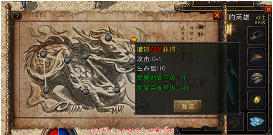 英雄40级开启九龙图系统,激活后可以获得永久性属性。