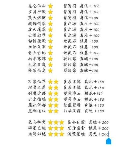 【宗门禁地】:通过派遣弟子,获得奖励,个人觉得就算0氪也要买加5次次数的。一天多一千属性,时间久了十分可观,如图是对应的奖励,星级高优先,同星级选根基。