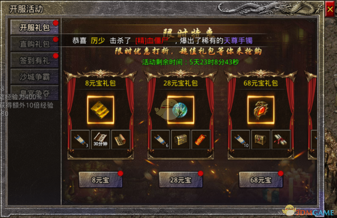 也可选择购买开服礼包进一步提升战力和等级,从而领先去其他玩家。