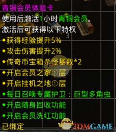 青铜会员:可以用18元宝通过商城购买,或者玩家直充30元时也可获得一张青铜会员卡,时长为1个月。