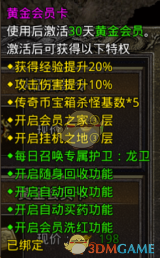 黄金会员:可以用198元宝通过商城购买,或者玩家直充500元时也可获得一张黄金会员卡,时长为1个月。