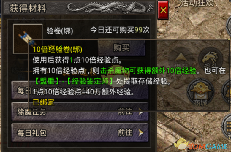 当玩家升到26级时,将会开启幻境副本,幻境六层和幻境八层由于怪物比较多,所以相比其他层来说更适合挂机,再配合上10倍经验卷即可快速升级,10倍经验卷获取方式有多种。
