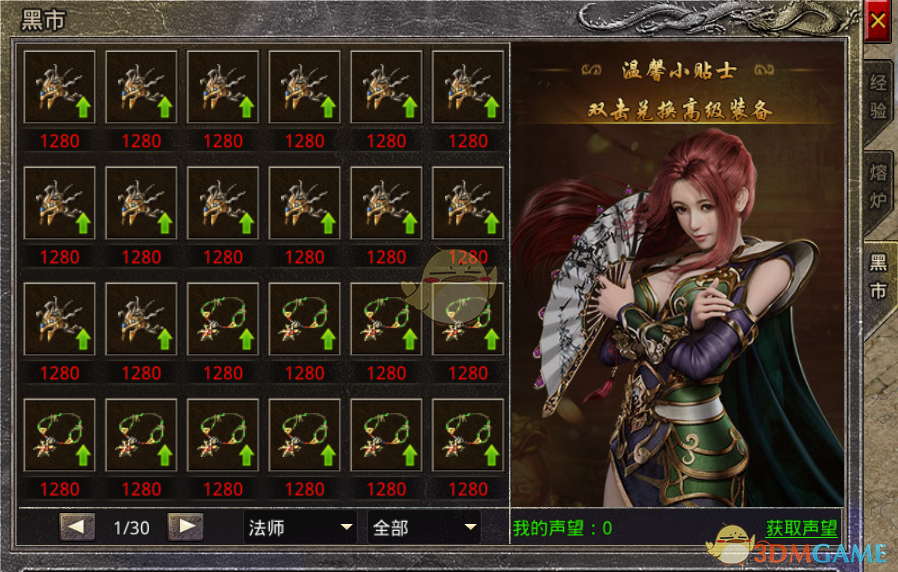 4、在黑市通关声望值来兑换自己需要的装备,声望值可以通过熔炉去熔掉一些自己不需要的装备来获得。