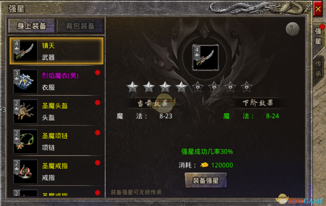 获取到自己需要的装备后,还可以通关装备强星的方式来进一步提升装备的各项属性值,强星需要较多的金币,玩家可以通过回收掉一些低级装备从而获得金币。