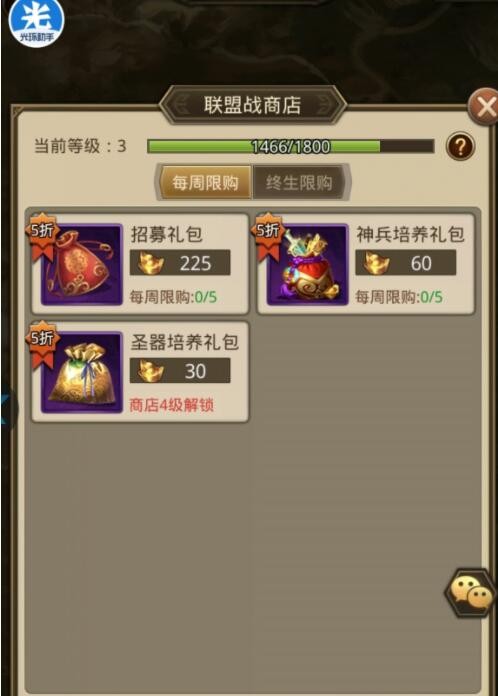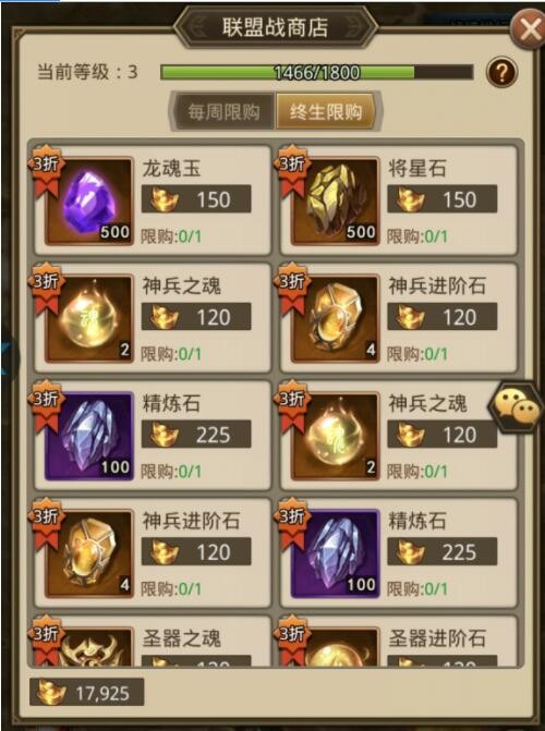 联盟战商店有一个【每周限购】和一个【终生限购】