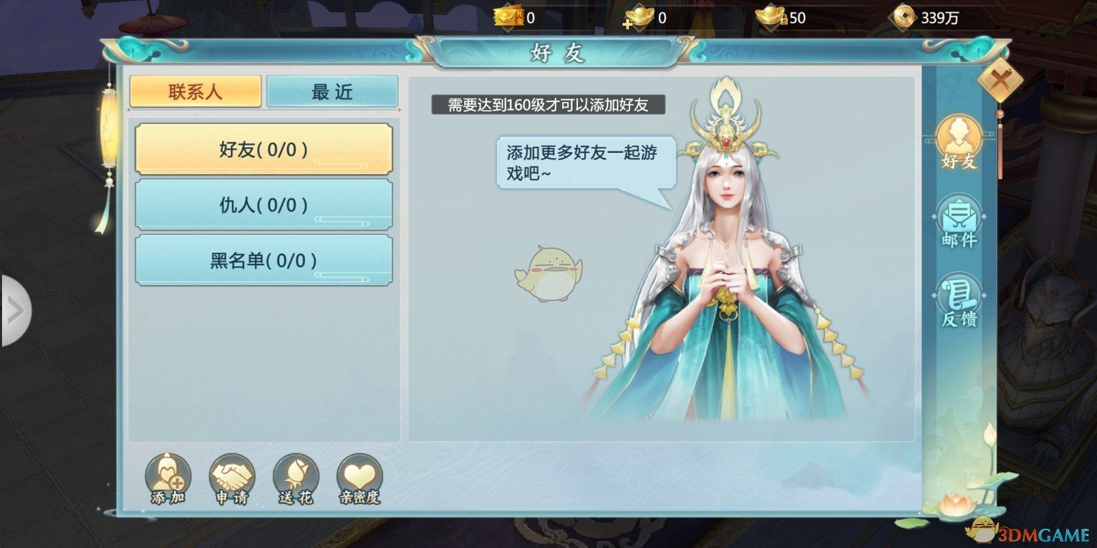 需要注意的是,本游戏的添加好友功能需要玩家等级达到160级才能开启!此前大家可以接受别人发来的好友请求!