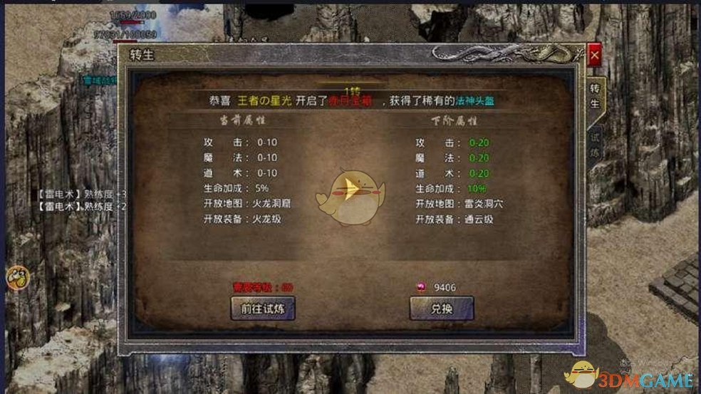 3、新区最快速的提升等级方式:进入游戏后在第一时间先购买个双倍经验卷,等快速达到28级已经可以配合系统送的时限经验勋章,10倍经验卷,快速提升自身等级,这种经验全用了的情况下一般1到1个半小时就可以达到50级然后转生了。