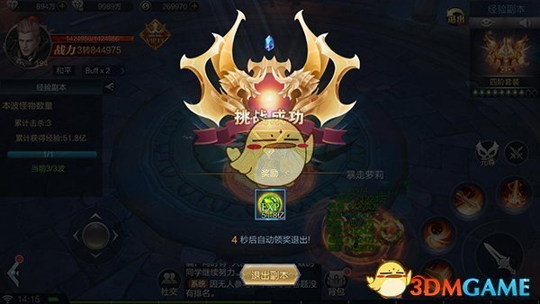 玩家可以在副本中击杀怪物获得大量的经验,击杀怪物的数量越多,获得的经验也就越高。当然怪物并不是无限制刷的,而是有一定的数量,副本中一共3波,击杀完后,副本就结束了。