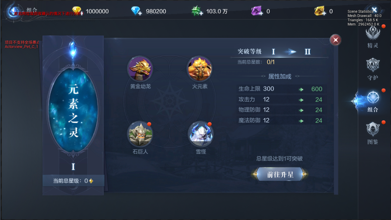 随着精灵总星级提升,可以不断突破组合,提升角色属性。