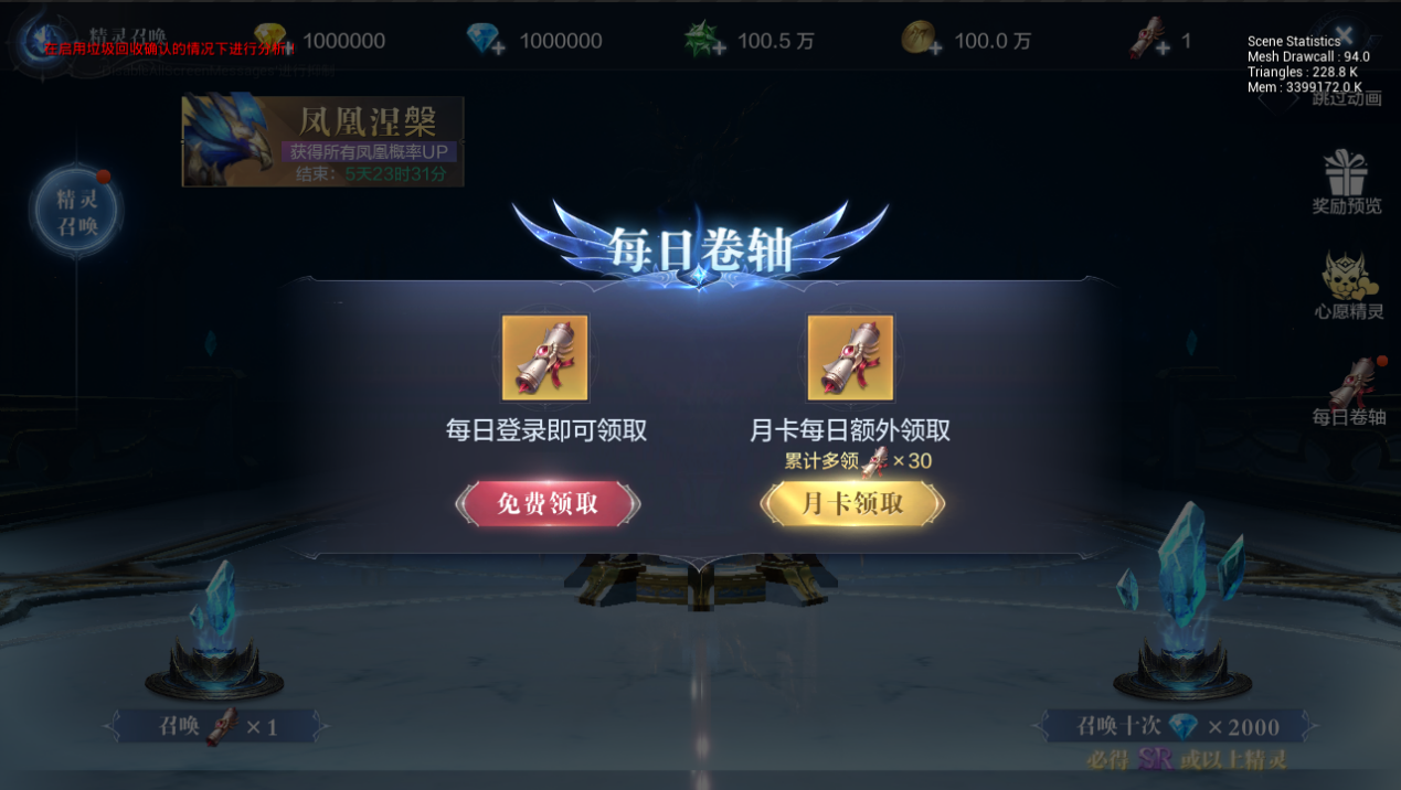 当然啦,为了回馈勇士们,如今只需要每日登陆游戏就可领取到1个“召唤卷轴”,购买月卡的话,每天还能多领一个。