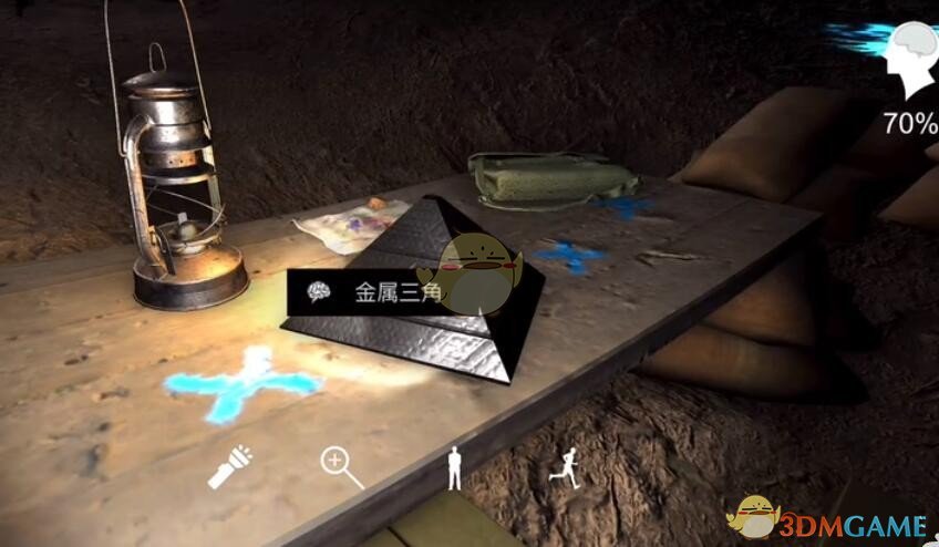 线索详情:一个奇怪的金属三角,放在桌子上,看上去像是有人正在研究它。