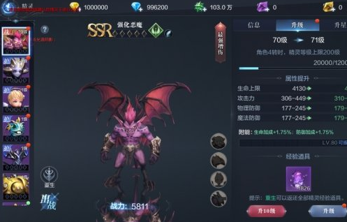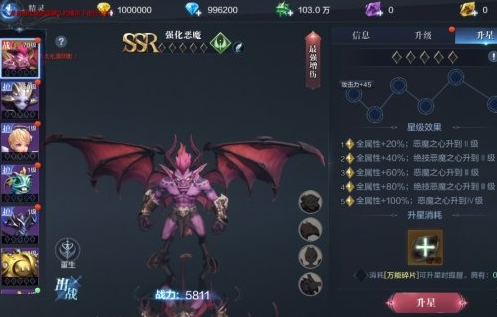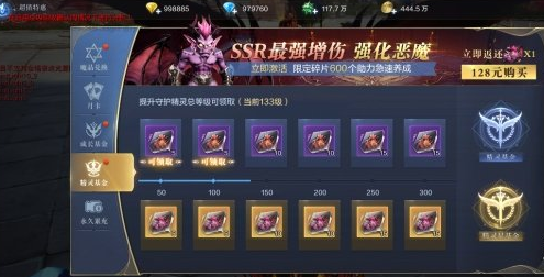 随着精灵的逐步养成,可以获得大量的小恶魔碎片,购买精灵星基金,还能直接获得SSR最强增伤精灵--强化恶魔。