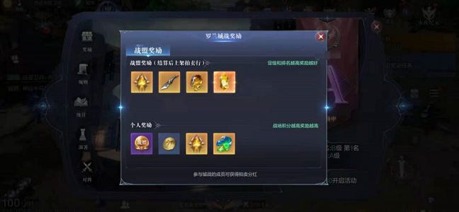 活动奖励:活动奖励主要分为两种,分别是战盟奖励和个人奖励 战盟奖励:罗兰印记、精琢刻刀、高级武器萤石精粹、玛雅晶石 个人奖励:高级防具萤石精粹、罗兰印记、战盟贡献、金币