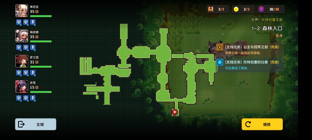 先来1-2图示位置开启支线关卡隐蔽的花丛