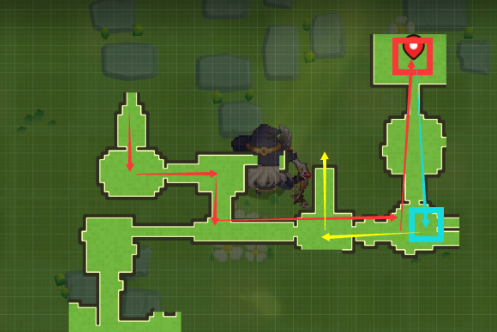 4.带着钥匙沿着黄色路线,将钥匙投掷到锁上。