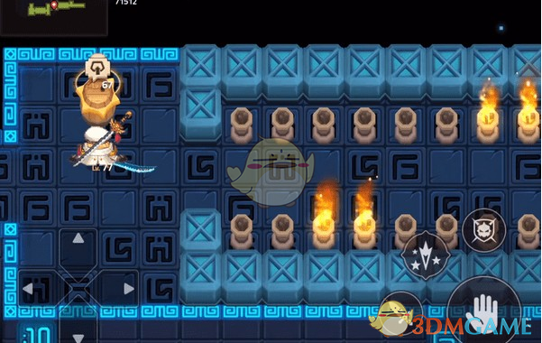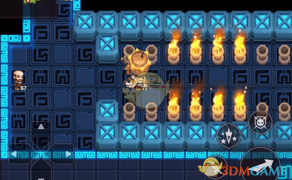 可以把两小格为一步,往右第三步的时候记得要回头,先往左走一步,然后等右边的火焰熄灭,就能直接通过了,第一个小关卡还是很容易的;