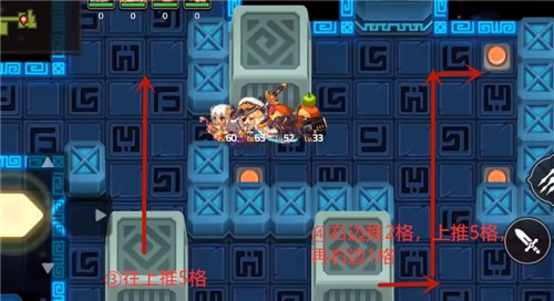 最后人踩在最后左下角的那个机关按钮上,这关就算是通过了。