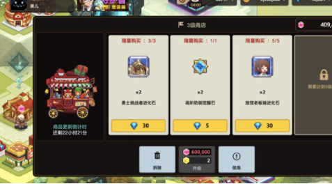 2、由于在游戏后期会有指定属性的箱子,另外在开启家园建筑以后需要用到星片,所以在游戏前期的时候,不要把所有的星片都兑换成进化石。