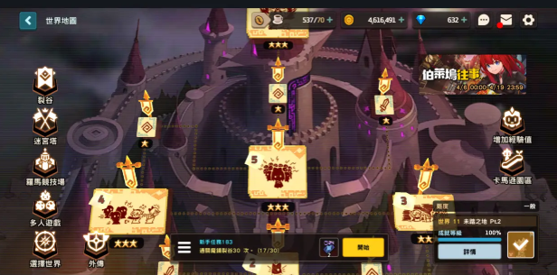 11-通道2到最终 BOSS 暗刀五星77 72之后的觉醒没点,其他队员练度没变