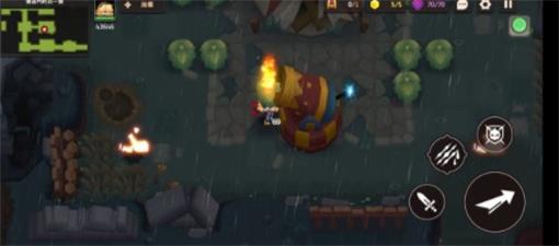 然后沿着图示箭头位置来到隐藏房间,和这个房间的大炮互动,把大炮转动至方向朝上,最后用旁边的草丛引火点燃大炮