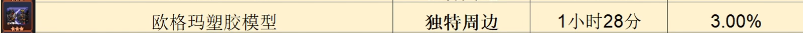 制作时间1小时28分,有3%的概率出欧格玛塑胶模型。
